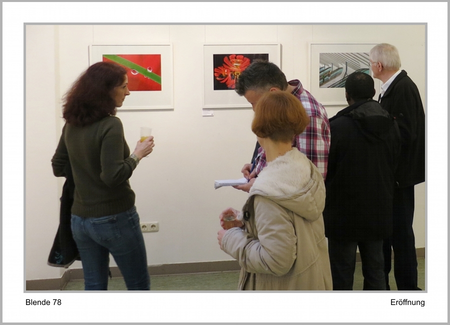 Die Ausstellung wurde um 11:00 Uhr durch Michael Ludolph, den 1. Vorsitzenden des Vereins eröffnet. Als besonderer Gast hat Klaus Peter Schubert als Landesvorsitzender Westfalen des DVF (Deutscher Verband für Fotografie e. V.) ein paar Begrüßungsworte an die Besucher gerichtet. Der Verein und auch einige seiner Mitglieder sind im DVF organisiert, der als Dachverband der Amateurfotografen in Deutschland fungiert.