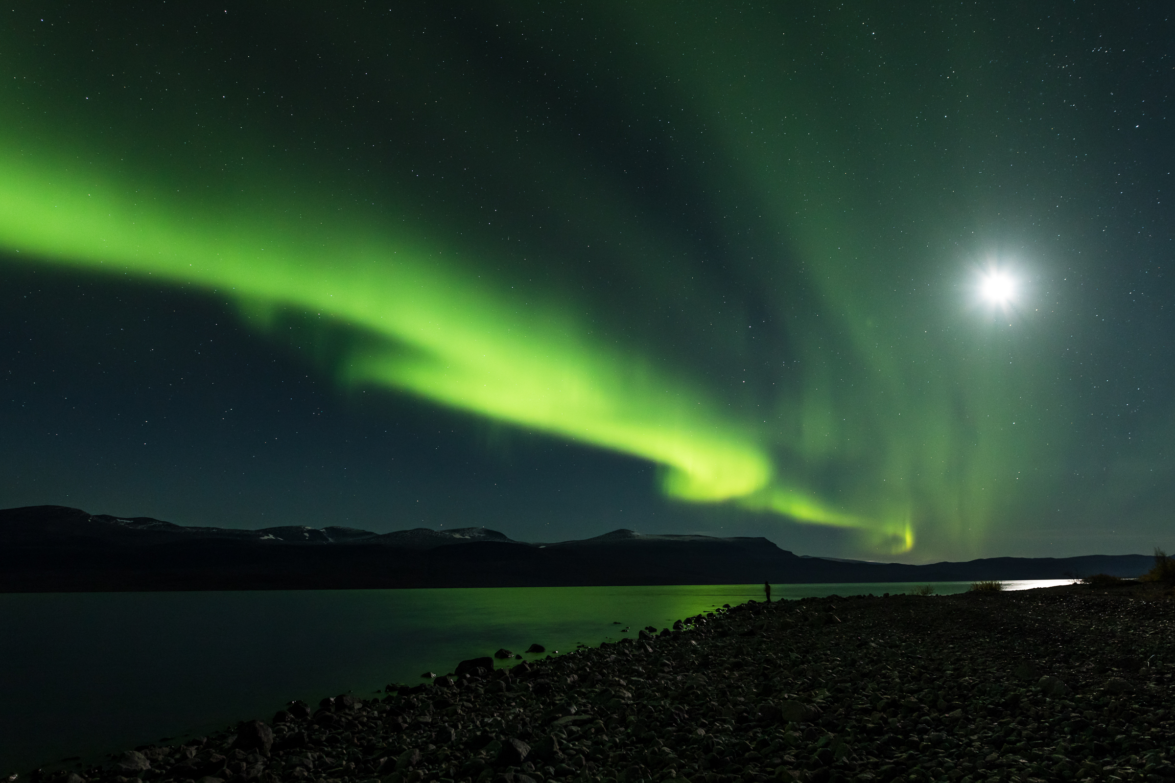 Nordlicht-4 Veröffentlicht am 10. März 2022 in Jahresausstellung 2021Volle Auflösung (2400 × 1600) ← Vorheriges Nächstes → Marion Maurer: Nordlicht mit Vollmond, Torneträsk Schweden